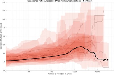 ALPHARETTA, Ga., April 7, 2026 /PRNewswire/ -- Reveon Health today published a new case study analyzing January 2026 Transparency in Coverage (TiC) data and finding that, for the common office visit code CPT 99213, median negotiated commercial rates were approximately 33% higher in the 1,000-2,999 provider-group bin than in the 1-9 provider-group bin. The analysis drew from more than 400 GB of raw TiC machine-readable files, more than 99,000 provider group/rate samples and 8.41 million provider/rate samples across national PPO plans from United Healthcare, Aetna and Cigna.